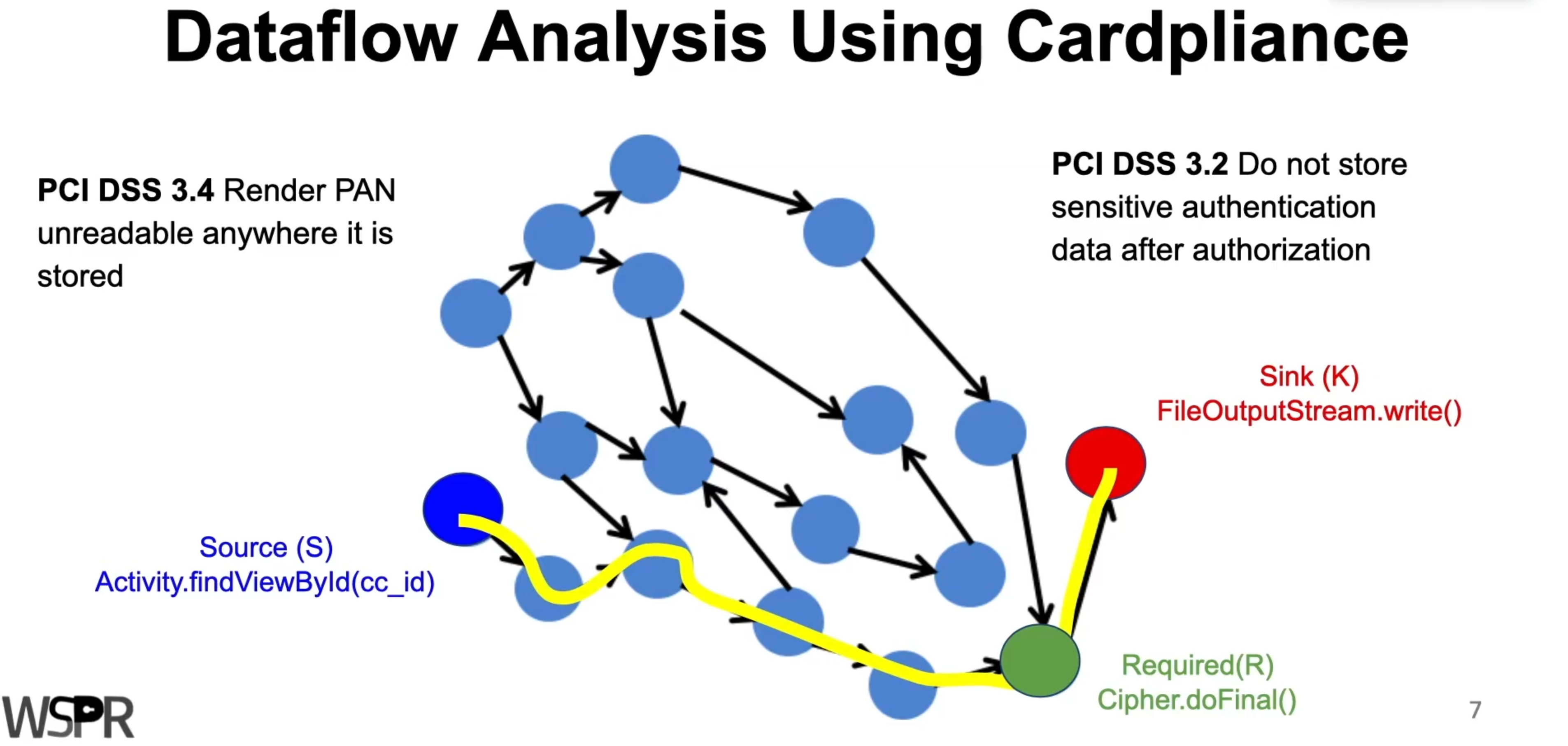 Are Android applications handling credit card data properly? Identifying vulnerabilities related to credit card information in mobile applications comes with challenges. No clearly-defined API for identifying and linking inputs, context-sensitive nature and imprecisede definition of DSS requirements make automatic identification non-trivial. Cardpliance is a tool, that performs compliance checks on Android applications. How does it work?