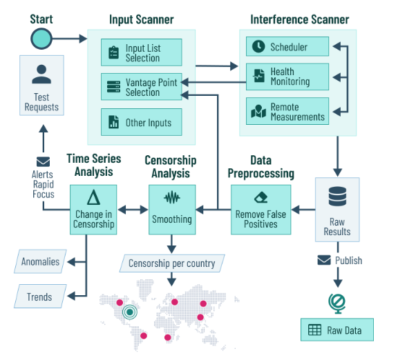 Censored Planet uses a modular design which is useful for running large scale experiments. It has different scanners and analysis techniques buit into it: